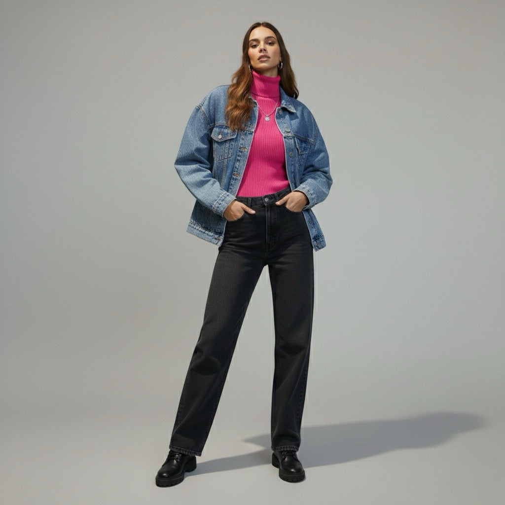 Sa coupe slim et manches longues met la silhouette en valeur, et le col roulé ajoute une touche chic et tendance.